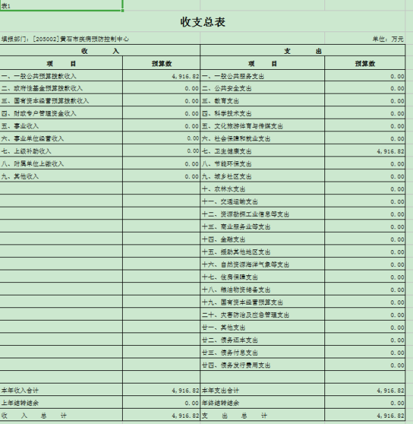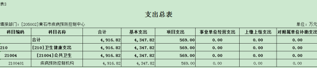 支出包括:卫生健康支出 4916.82 万元,占 100 %;