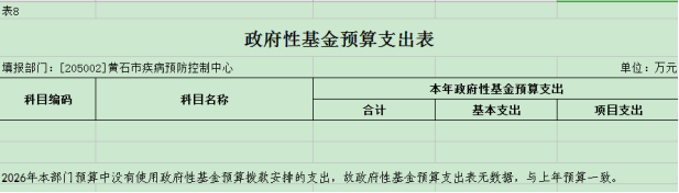 1)2026年疾控中心预算中没有使用政府性基金预算拨款安排的支出,故政府性基金预算支出表无数据,与上年一致。