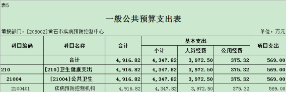 市疾病预防控制中心为市卫生健康委员会(市疾病预防控制局)所属二级预算单位,公益一类事业单位,副县级。设11个内设机构,分别是党委办公室(老干部工作科)、行政办公室(招标管理办公室)、人事科教科、财务科、法制稽查科、医疗卫生执法科、公共场所卫生执法科、学校卫生执法科、职业卫生执法科、传染病执法科;5个派出机构,分别是:市疾病预防控制中心黄石港区分中心、西塞山区分中心、下陆区分中心、开发区·铁山区分中心、新港(物流)工业园区分中心;另有14个专业所室。核定事业编制218名。设党委书记1名,主任1名,副主任3名,纪委书记1名。正科级领导职数17名(含老干部工作科科长1名、城区分中心主任5名),副科级领导职数24名。财务实行独立核算,执行政府会计制度。