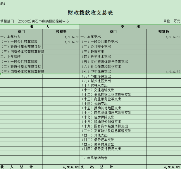 支出包括:卫生健康支出 4916.82 万元,占 100 %;